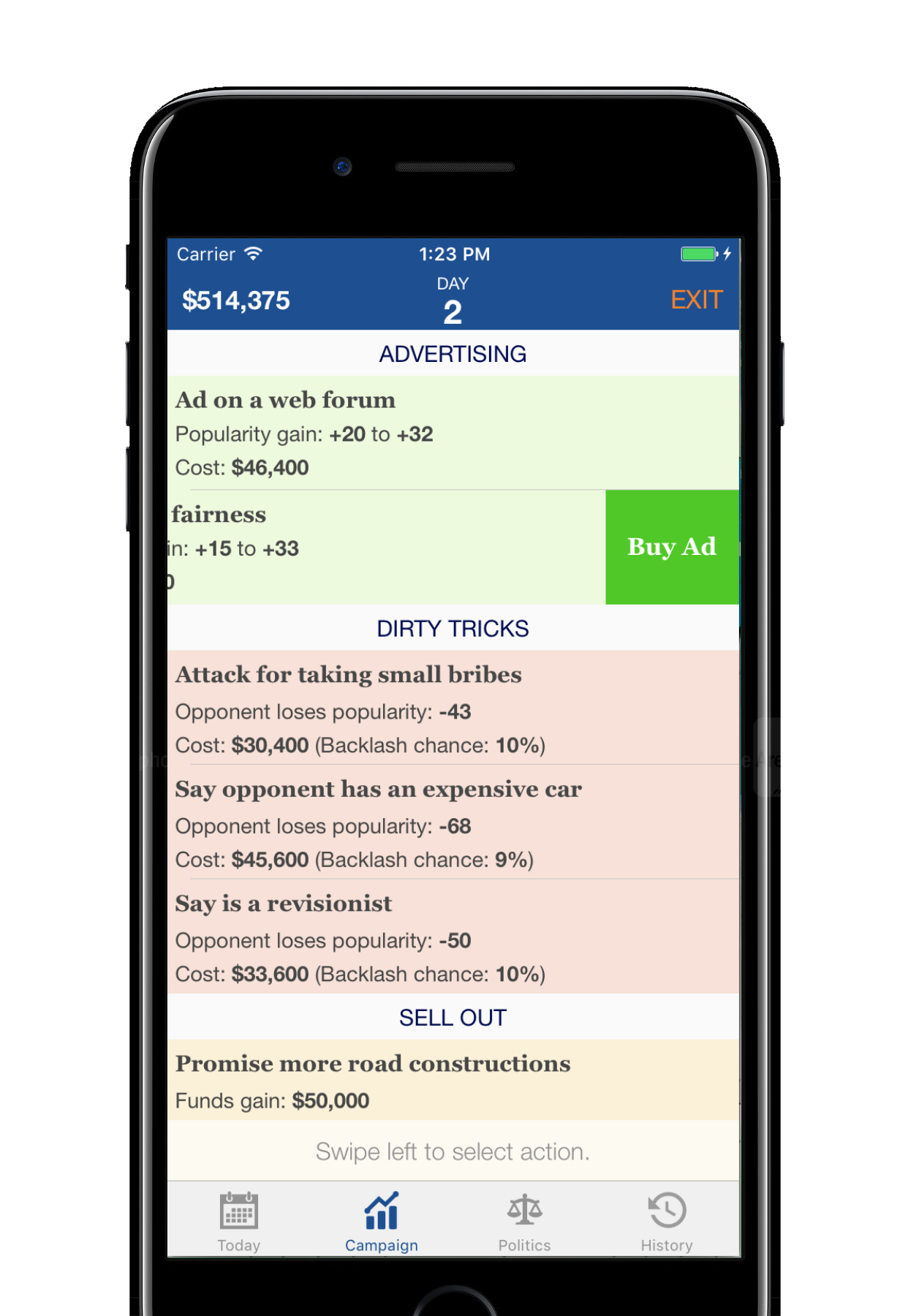 Increase your popularity, watch it grow each passing day, and win the Presidency.
